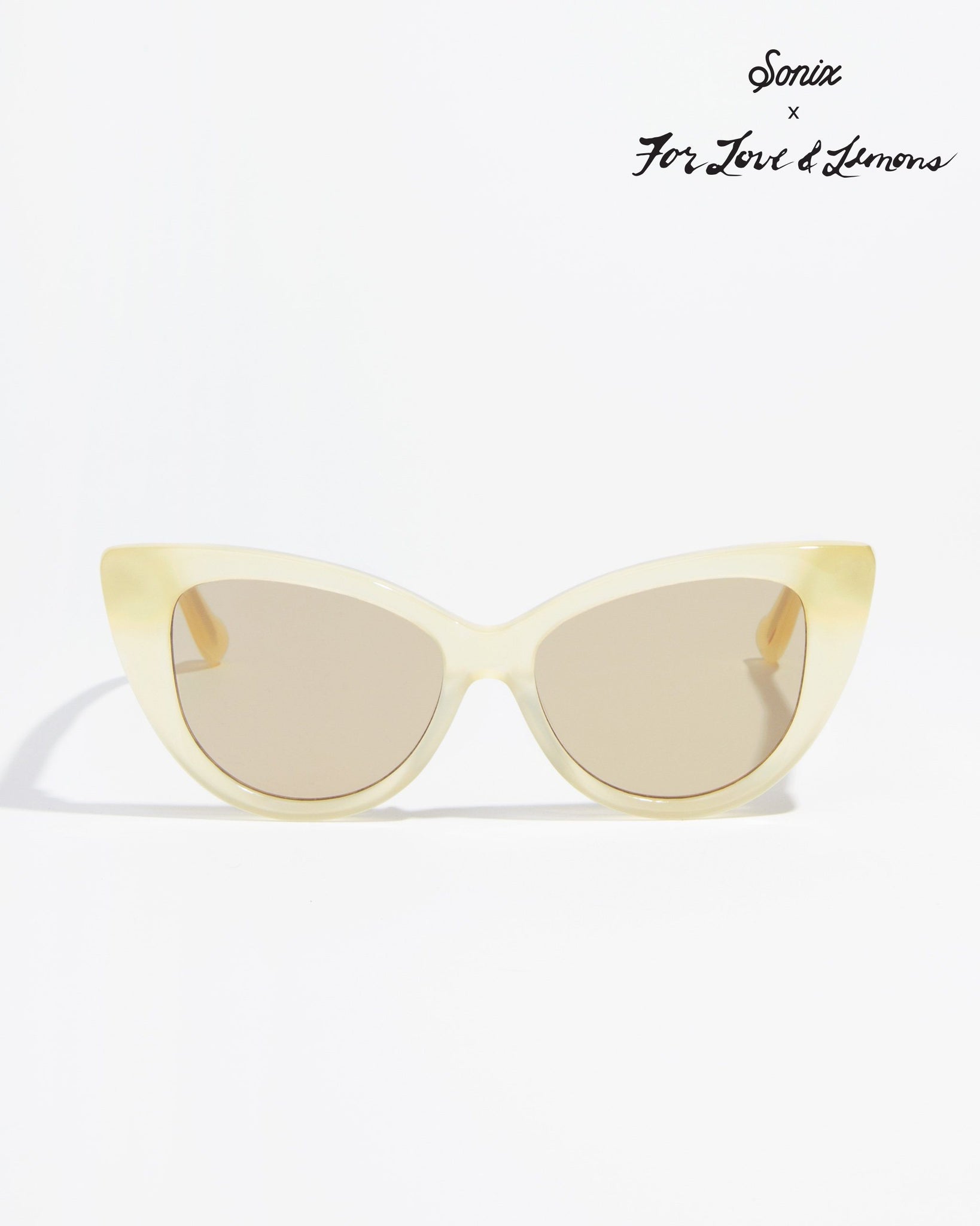We’ve collaborated with one of our favorite LA brands, For Love & Lemons, to bring you the perfect sunnies for summer. The vintage-inspired Kyoto brings a feminine flair, combining the long-beloved cat-eye with milky yellow acetate and khaki colored lenses.